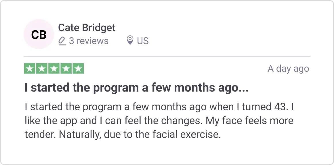 Your program includes personalized Face Yoga workouts each day to keep the muscles and skin cells working together.